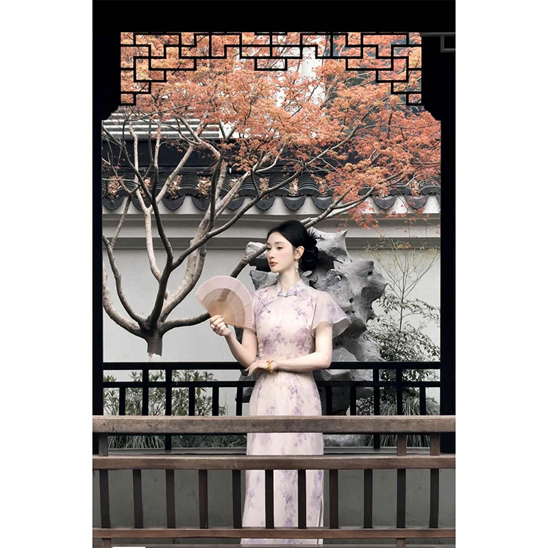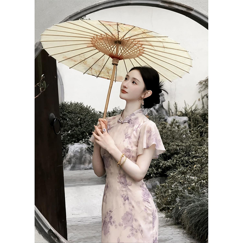 【紫菀】新中式紫色国风改良旗袍2025夏款新款遮肉收腰显瘦连衣裙