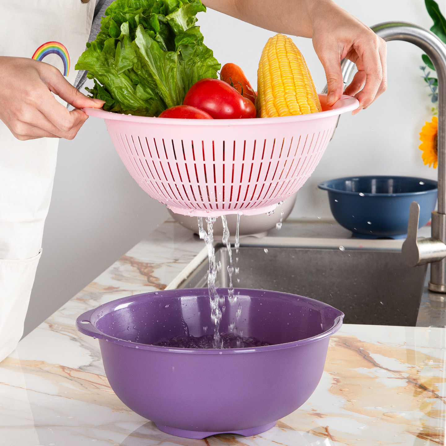 双层沥水篮洗菜盆家用厨房滤水篮