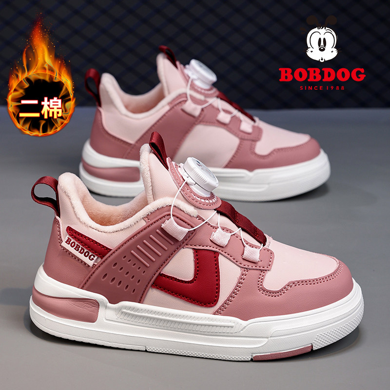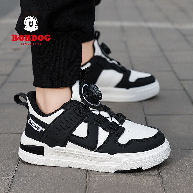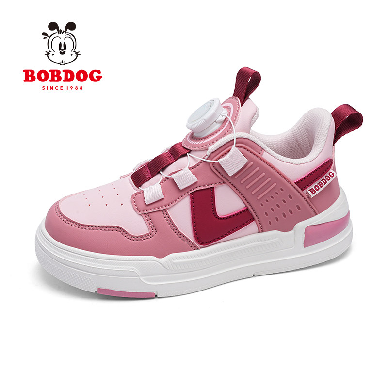 巴布豆童鞋女童旋转纽扣运动鞋春秋款皮面防水儿童小白鞋女孩板鞋