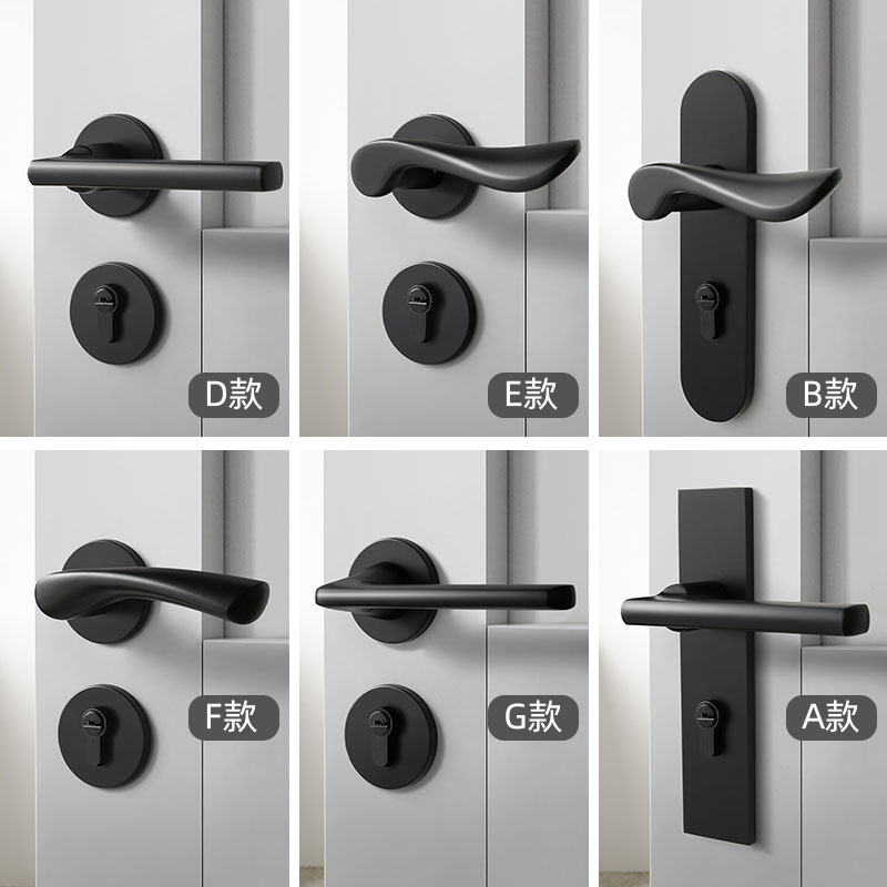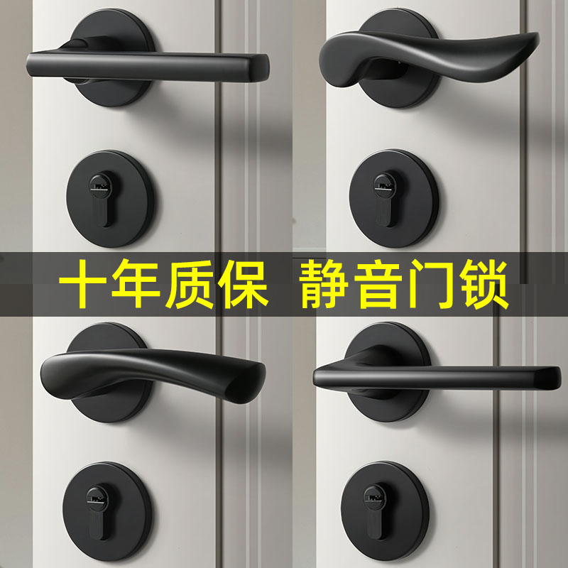 黑色室内门锁家用房门锁卧室门把手分体锁具通用型房间静音磁吸锁