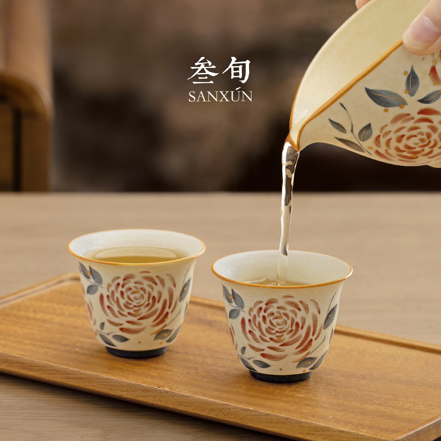 叁旬花漾玫瑰茶杯主人杯个人专用陶瓷品茗杯高档家用喝茶单杯中式