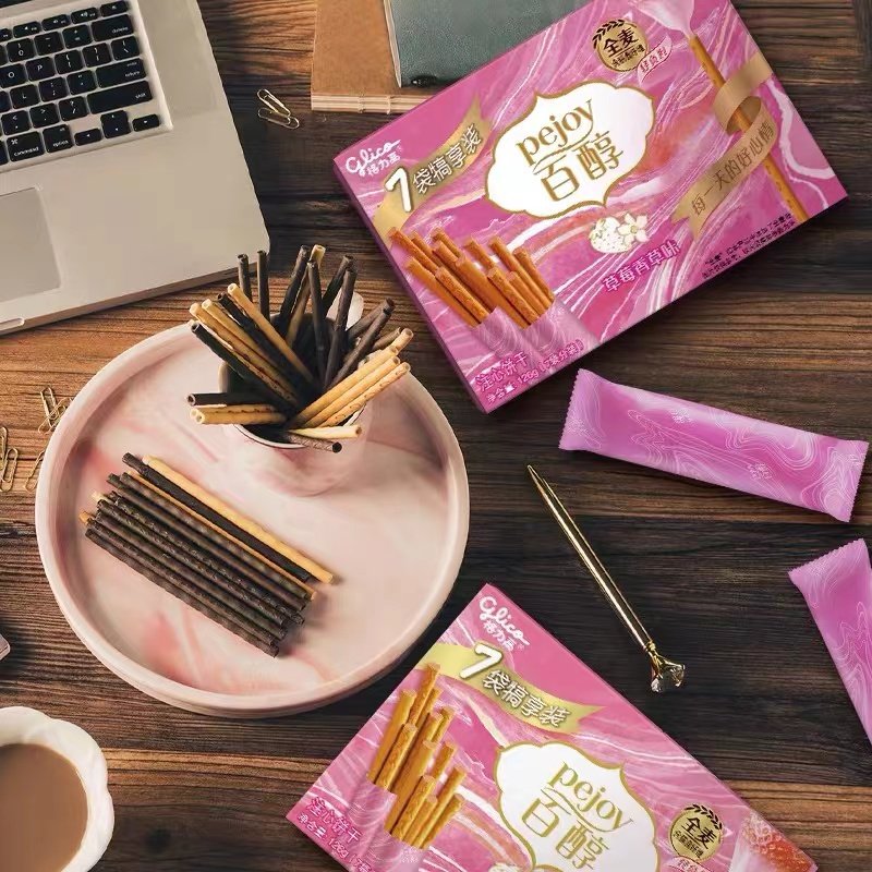 格力高百醇百奇注心饼干犒享装126g草莓抹茶休闲零食儿童大礼包