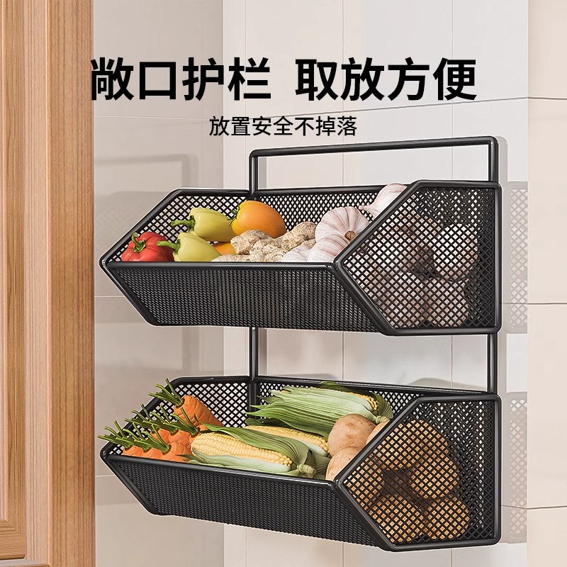 厨房葱姜蒜收纳盒生姜大蒜壁挂收纳篮调料收纳神器多功能墙上挂篮