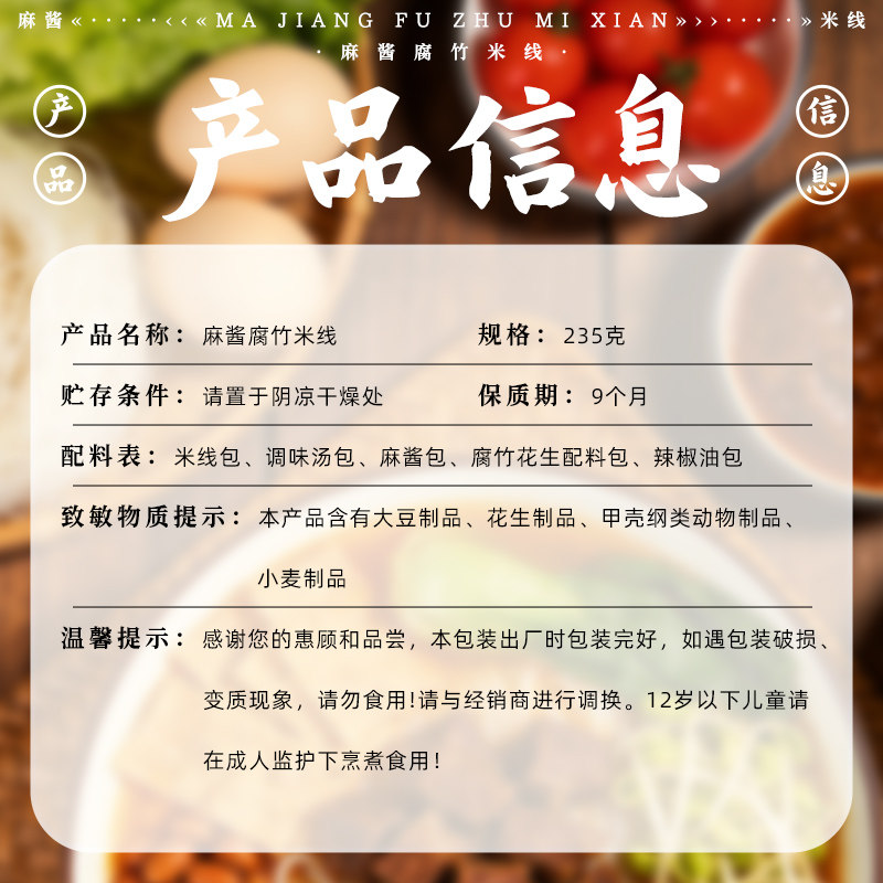 嘻螺会麻酱腐竹米线235g方便面速食水煮米粉麻辣烫早餐方便夜宵