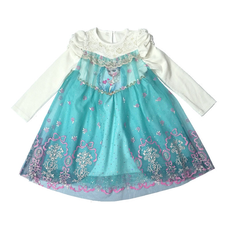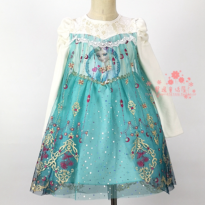 冰雪奇缘公主裙 春秋款韩国进口童装女童蕾丝爱莎公主长袖连衣裙