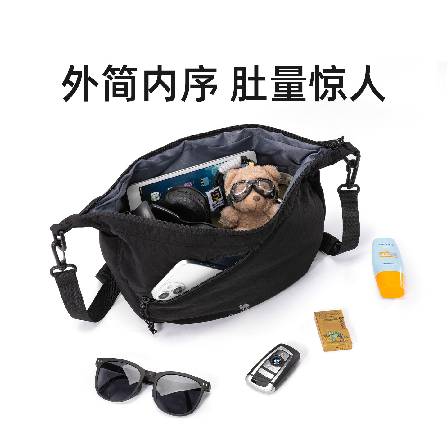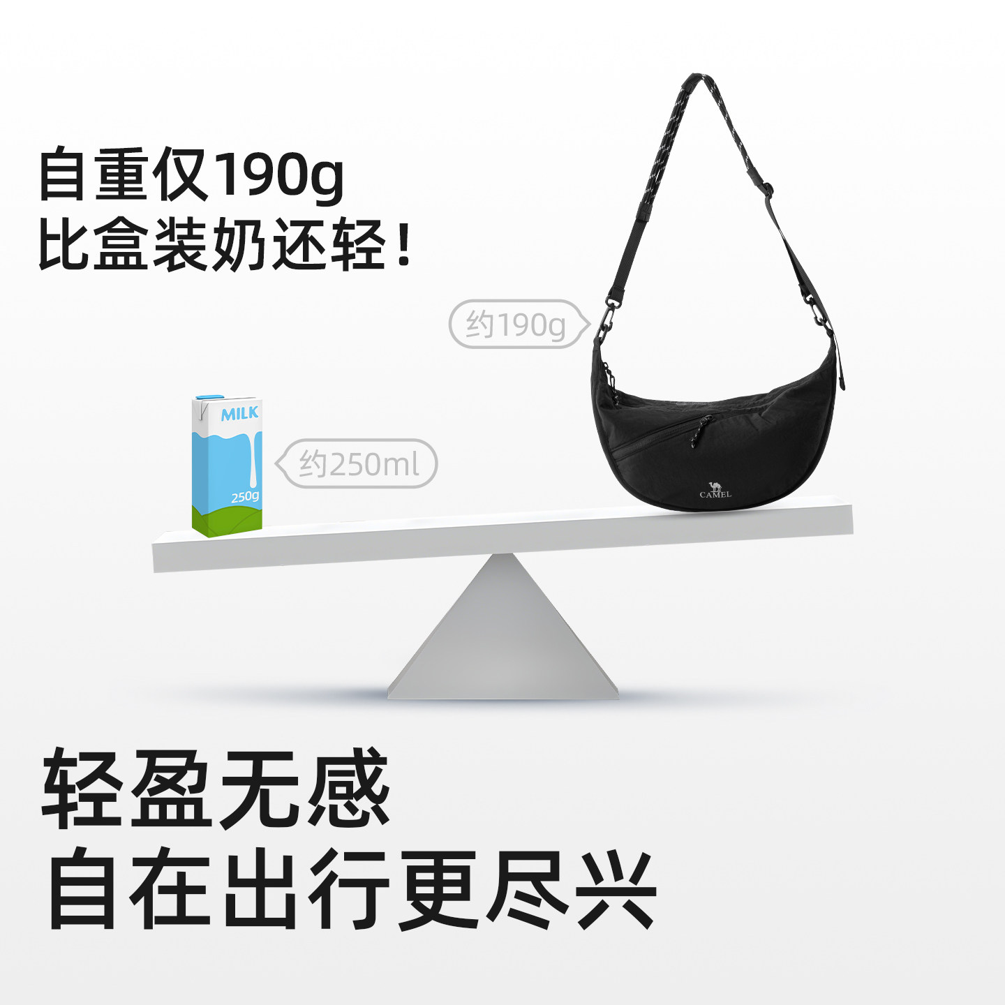 骆驼单肩饺子包通勤挎包肩带可调节大容量轻量化轻巧男女同款背包