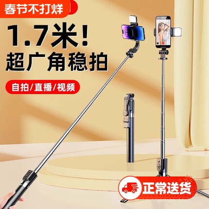 手机自拍杆手持旅游便携2025新款落地三脚架通用拍照神器360度旋转蓝牙遥控一体直播支架拍摄防抖稳定器棒