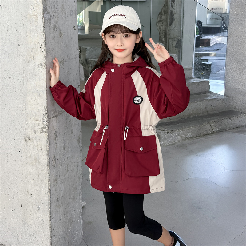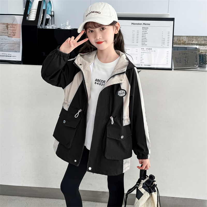 女童外套春秋款小女孩连帽风衣2025新款洋气拼色中大童秋装冲锋衣