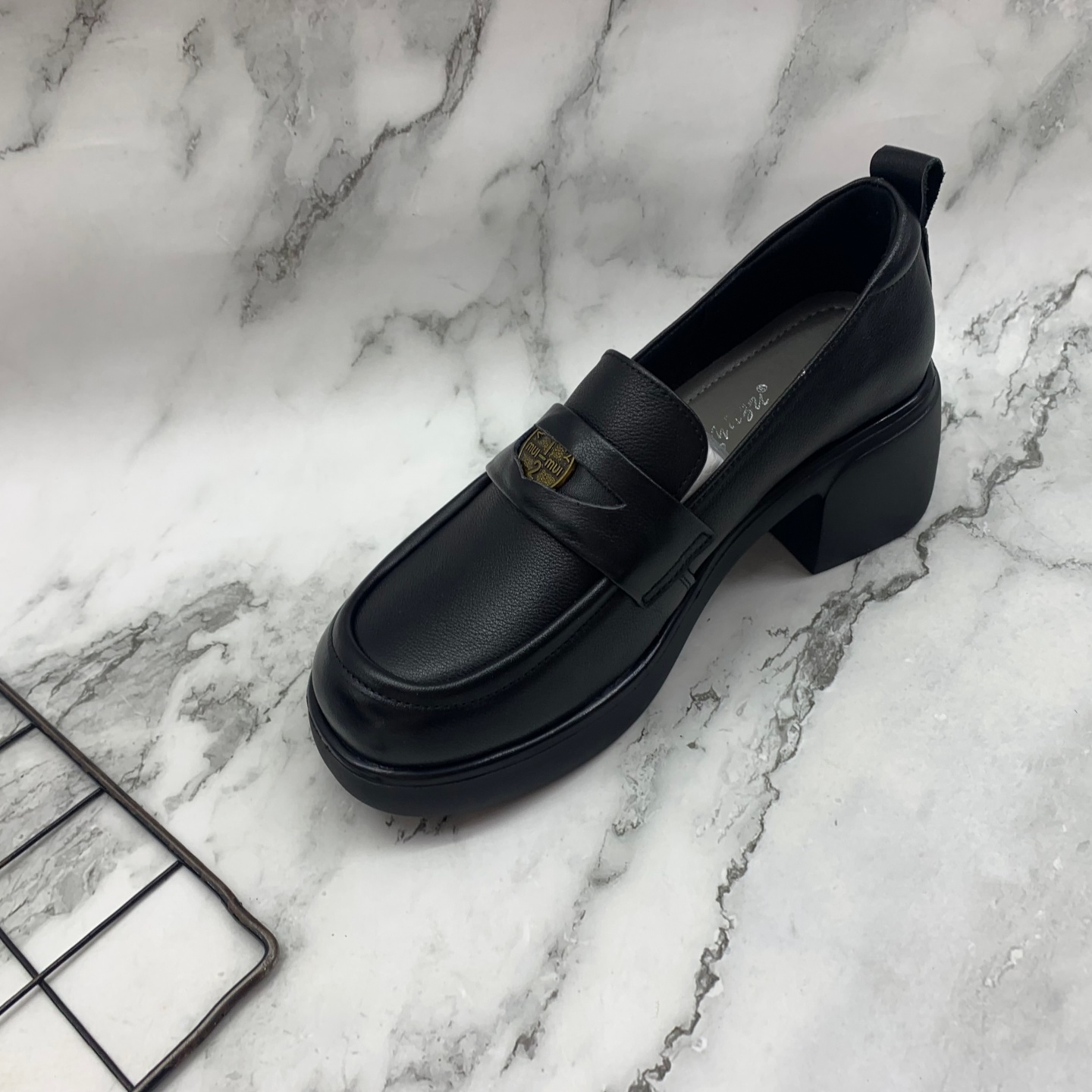 真皮乐福鞋方跟套脚牛皮2025春秋季新款断码处理女鞋休闲鞋女单鞋