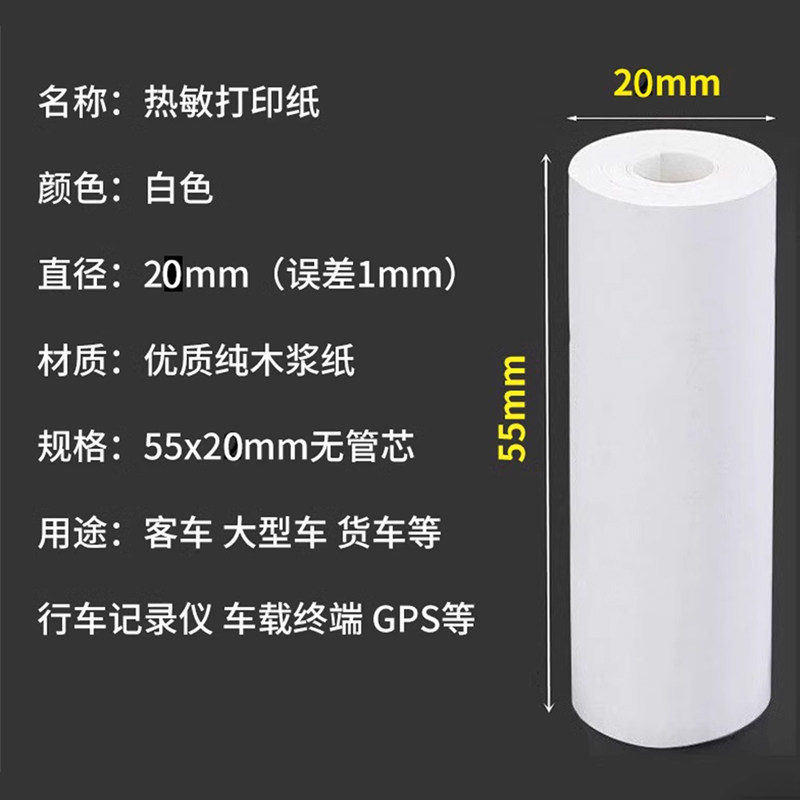北斗打印纸客车gps货车行车记录仪打印纸导航车载记录仪55*20热敏纸车载终端打印纸大客车半挂车通用打印纸