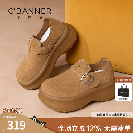 千百度全包勃肯鞋女款2025早秋新款小个子增高单鞋子女厚底乐福鞋
