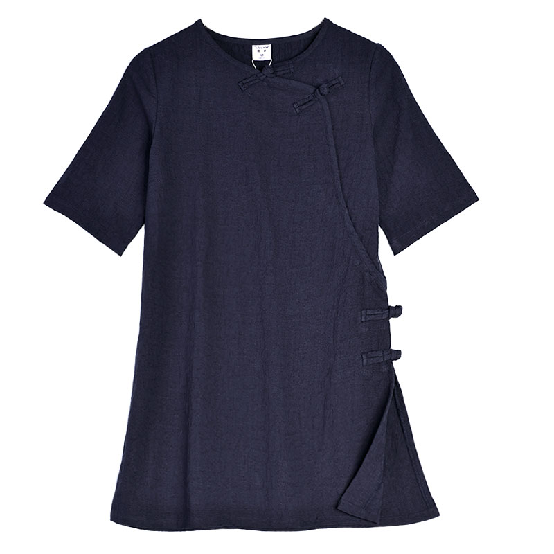 唐装禅服女士茶服 棉麻女新中式轻国风盘扣女装 遮肚子遮胯宽上衣