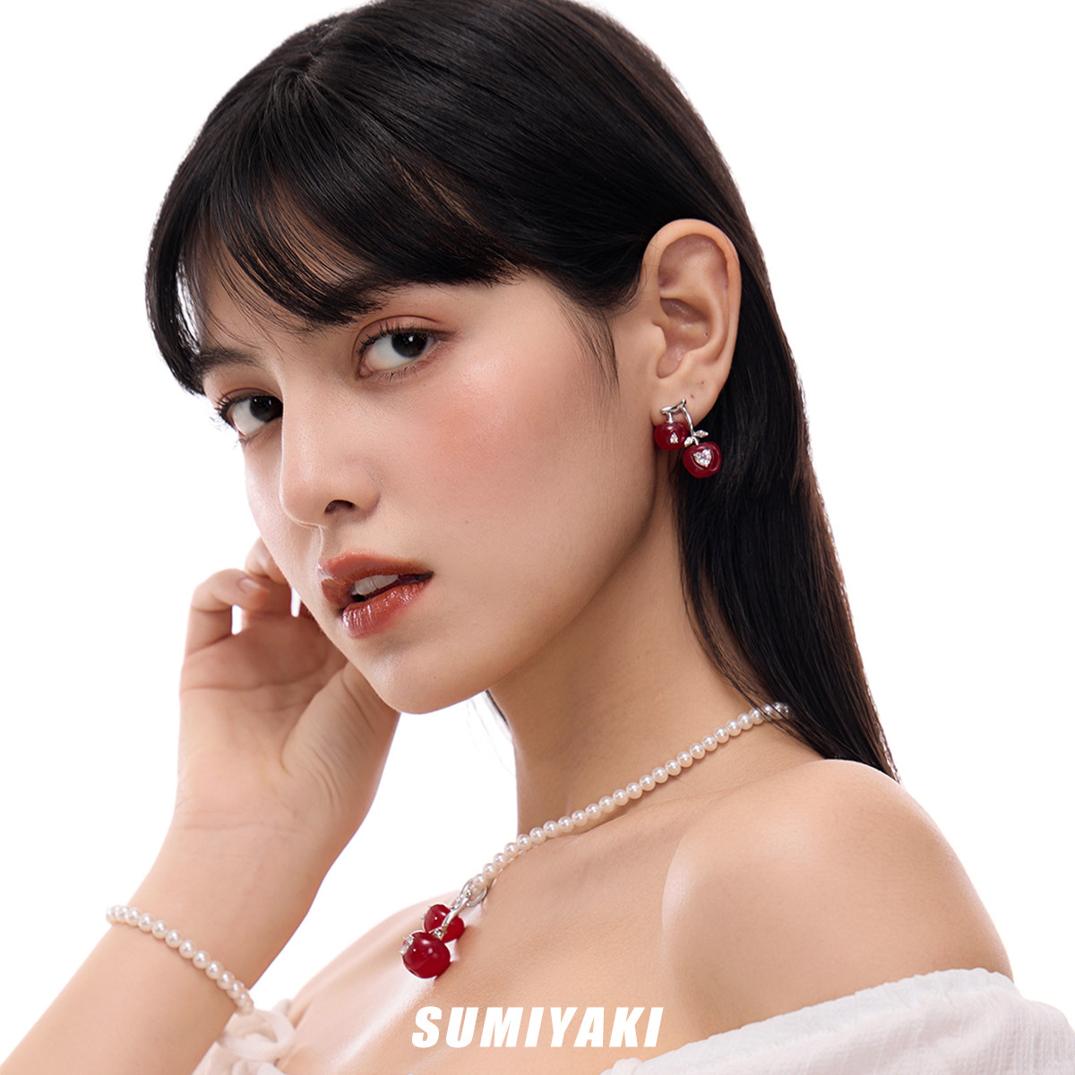 SUMIYAKI 立体滴釉樱桃车厘子可爱耳环 敲出片