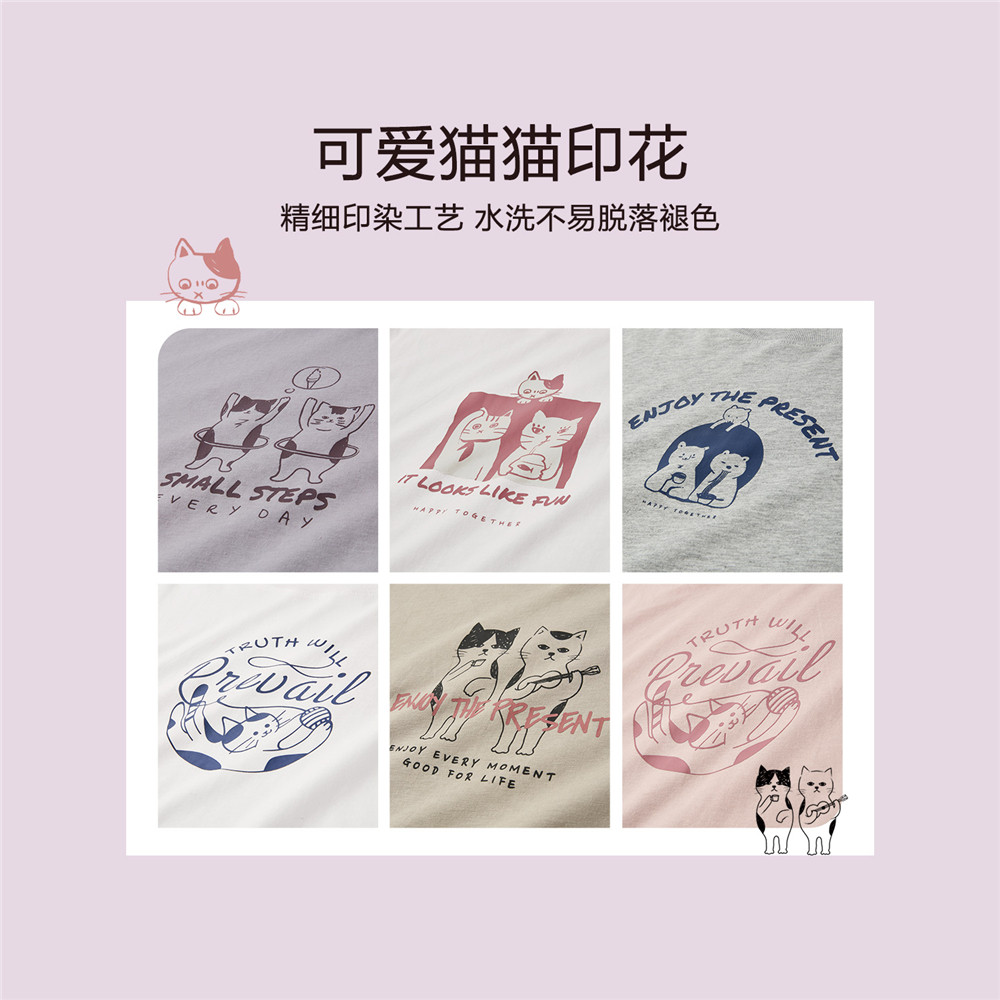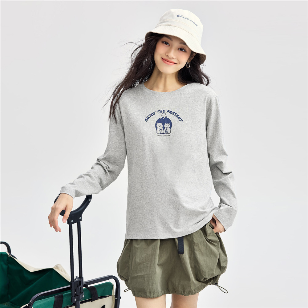 佐丹奴长袖T恤女2026年春新款纯棉猫咪主题印花圆领上衣13394794