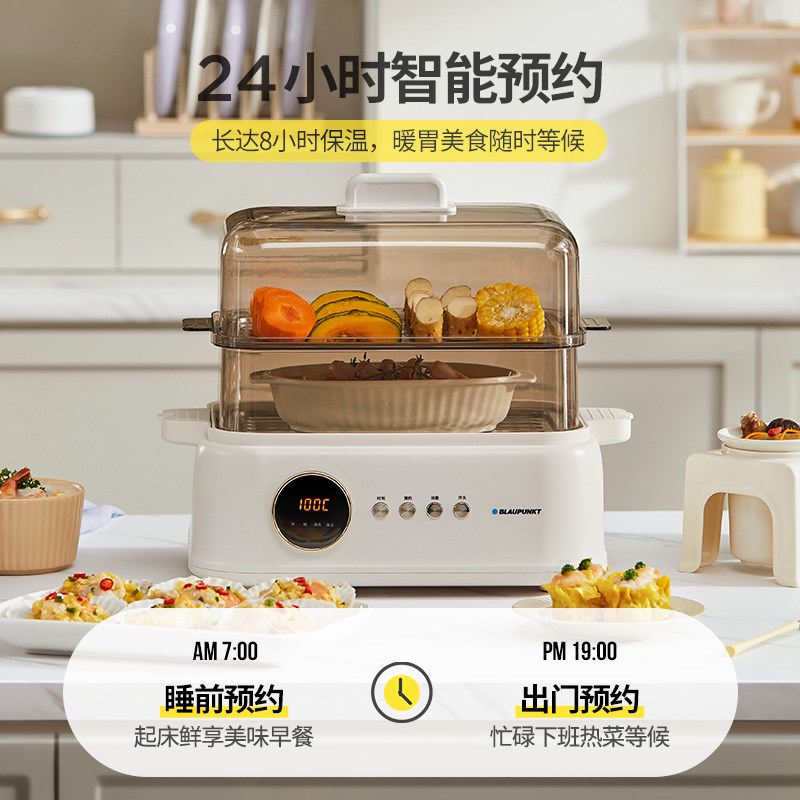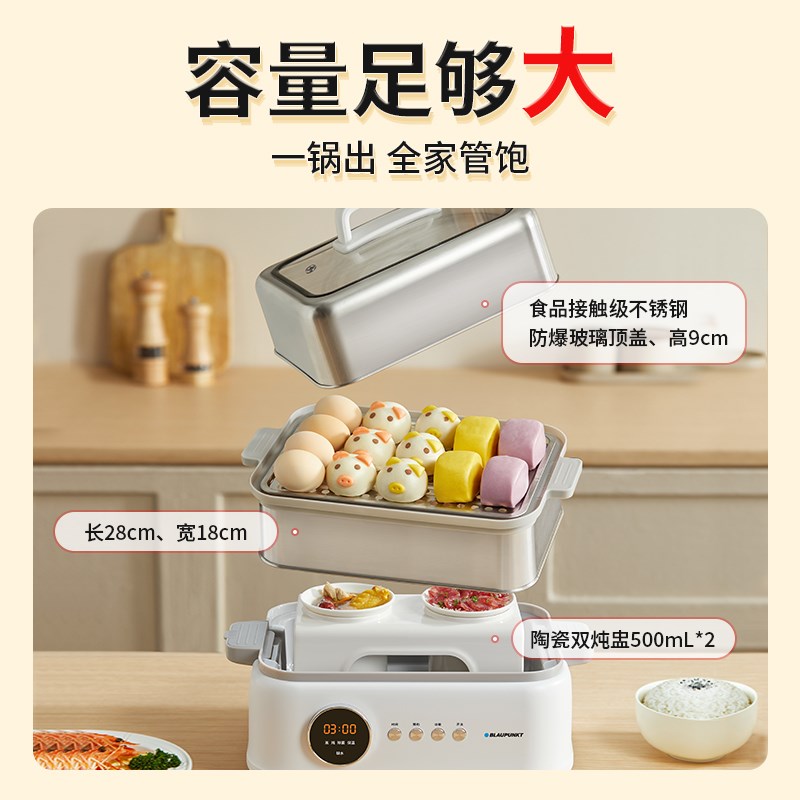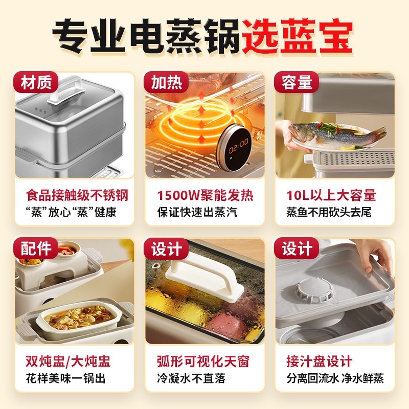 蓝宝不锈钢电蒸锅多功能家用蒸煮炖一体锅三层大容量全自动蒸汽锅