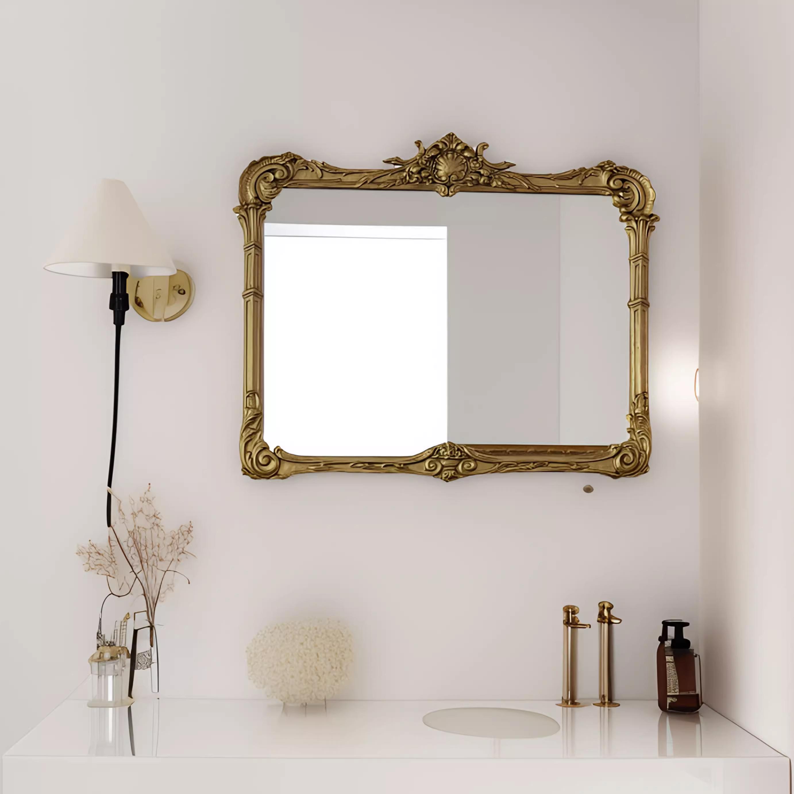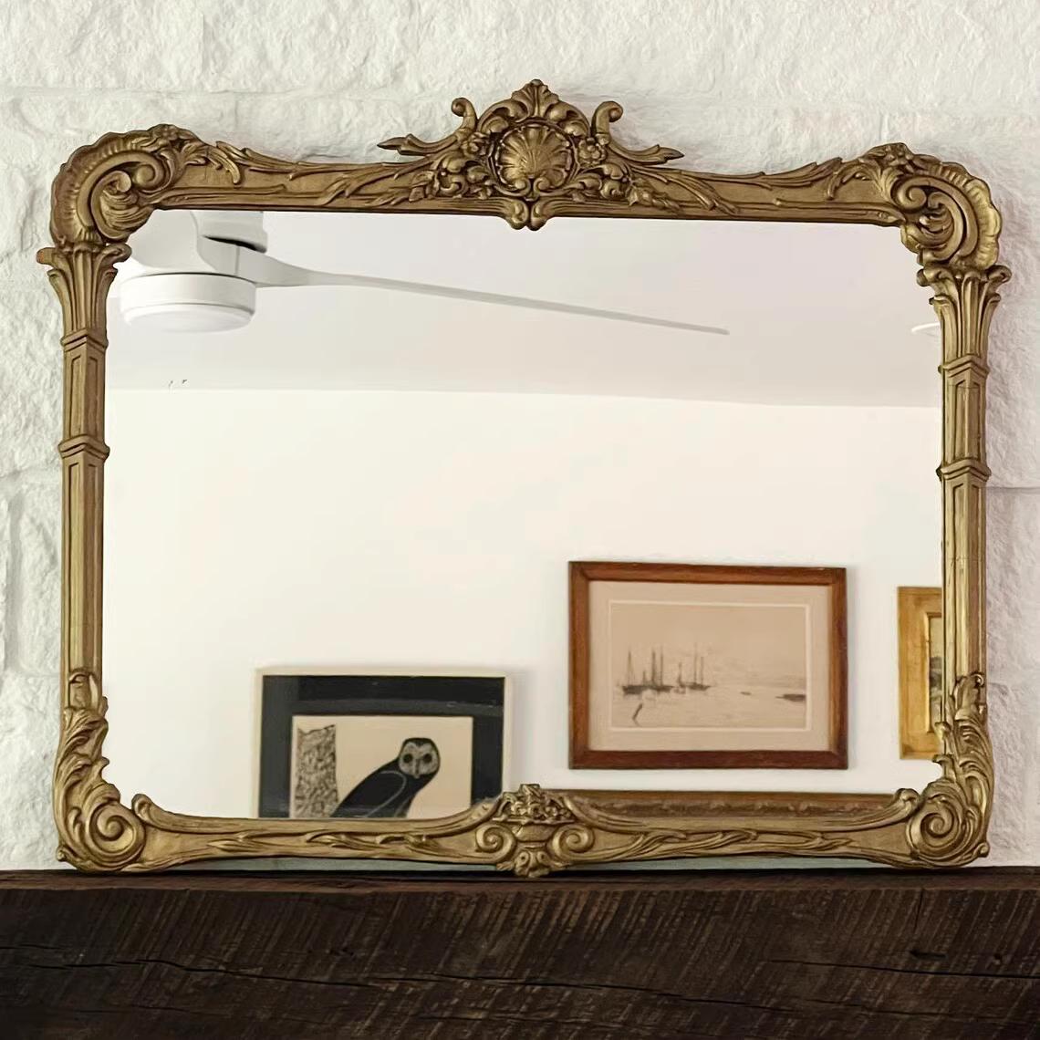 法式复古浴室镜异形壁挂卫生间雕花洗手台镜带灯除雾智能卫浴镜
