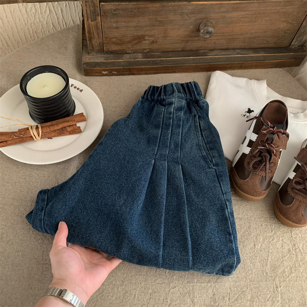 2025秋季新款韩版儿童百搭宽松牛仔裤男女童洋气阔腿休闲长裤潮酷