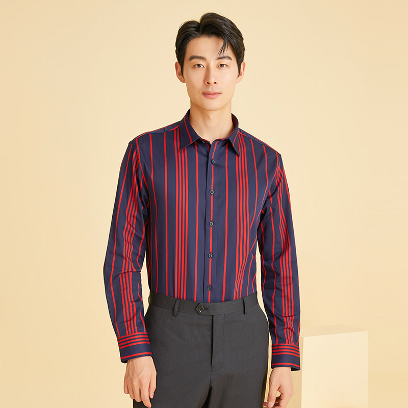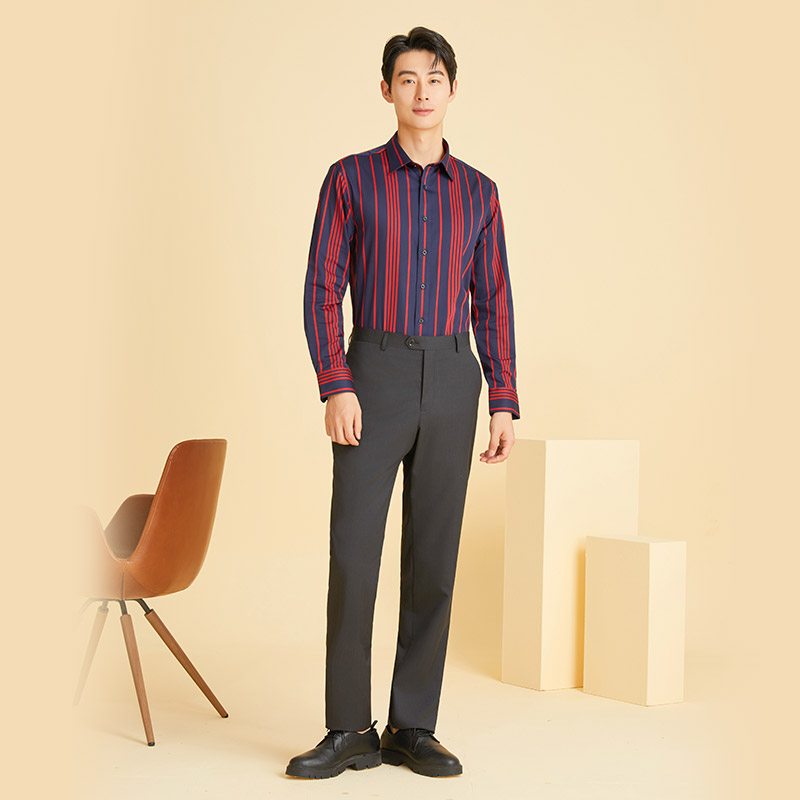 乔治白秋冬季男士长袖衬衫休闲条纹衬衣偏厚修身微弹上衣内里磨毛