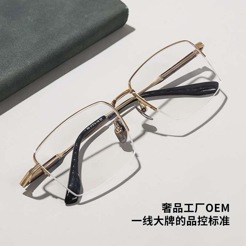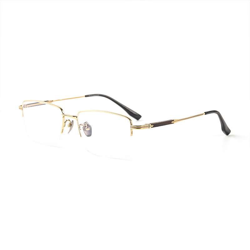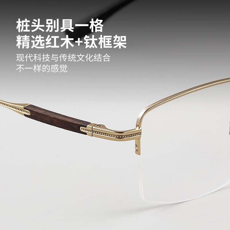 军达纯钛镜框超轻檀木腿半框商务男士眼镜架轻奢丹阳工厂 605