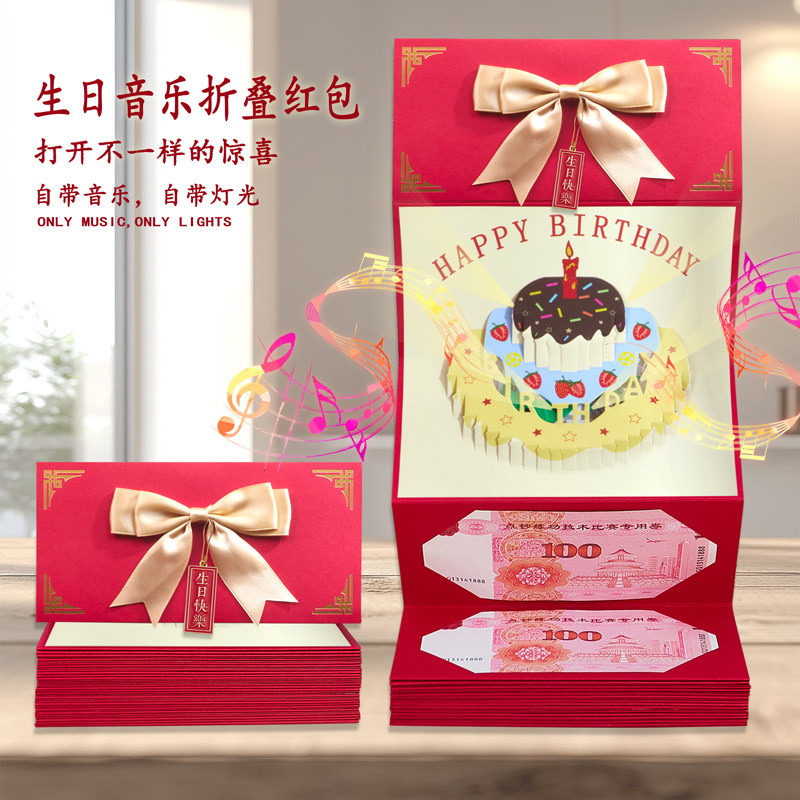 会发光的生日蛋糕音乐款折叠红包创意浪漫拉伸红包送朋友闺蜜礼物