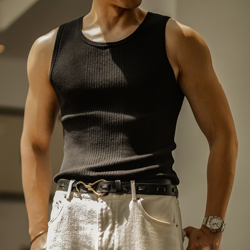 古叔的着 针织运动背心男2025夏季新款弹力修身复古无袖汗衫上衣
