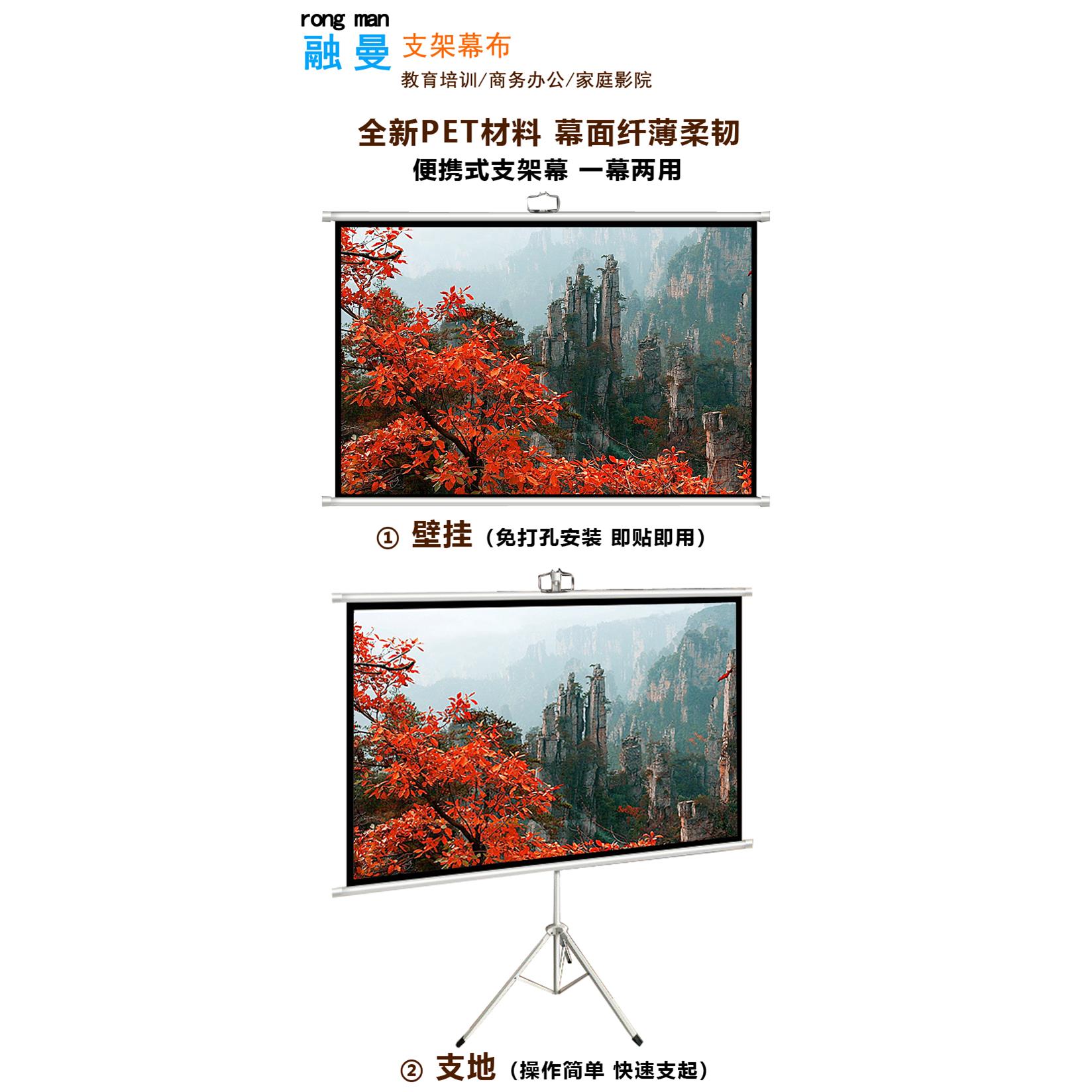 融曼投影幕布60/72/84/100寸120寸4:3/16:9支架幕布 投影机幕布 支地壁挂两用 家用投影仪屏幕支架落地便携幕