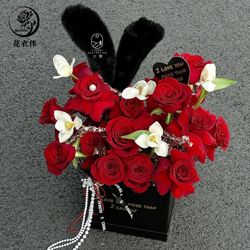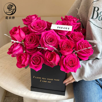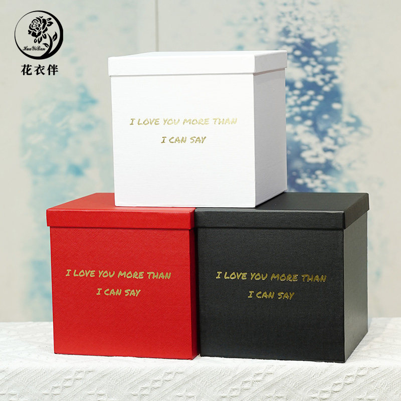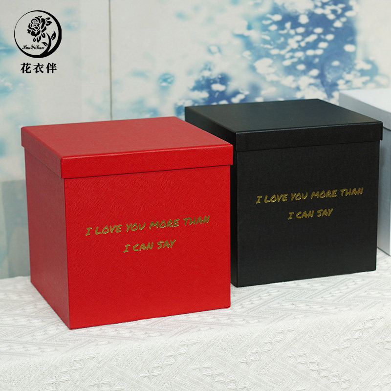 方形永生花礼盒鲜花盒烫金英文字母气球花盒情人节手工DIY抱抱桶