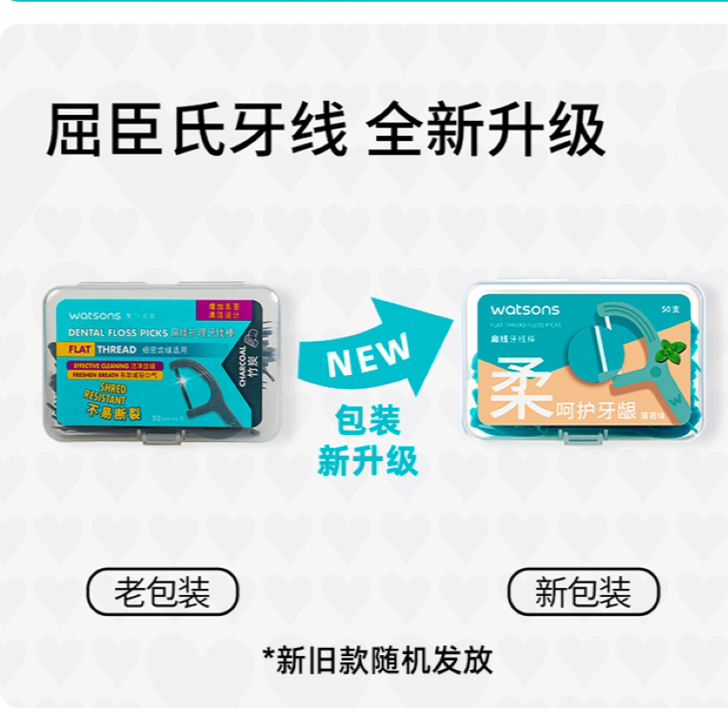 屈臣氏薄荷味扁线护理牙线棒口腔清洁牙线棒家庭装新旧包装随机发
