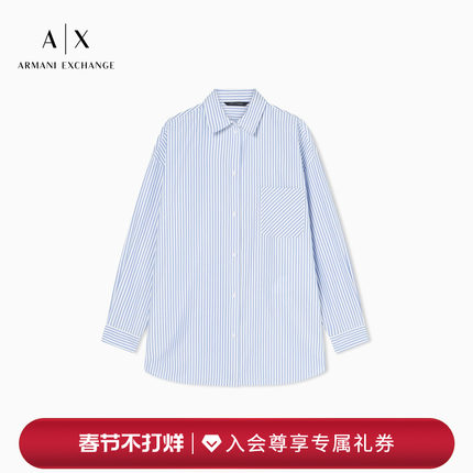 ARMANI EXCHANGE/阿玛尼26年春季新款女士翻领长袖通体条纹衬衫