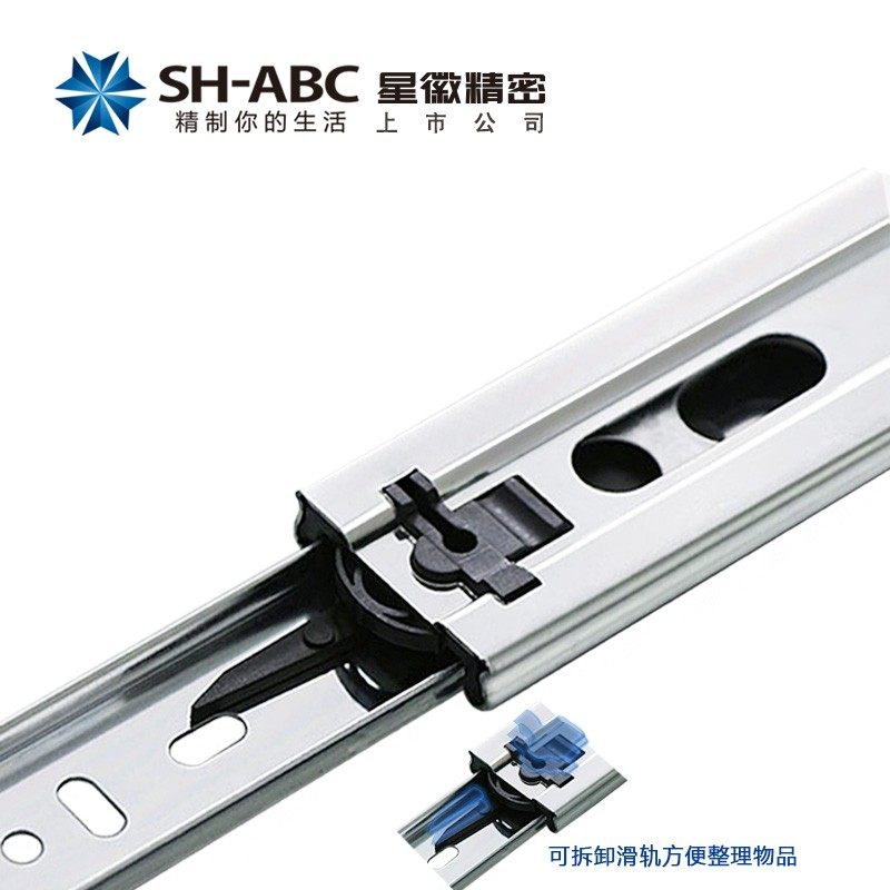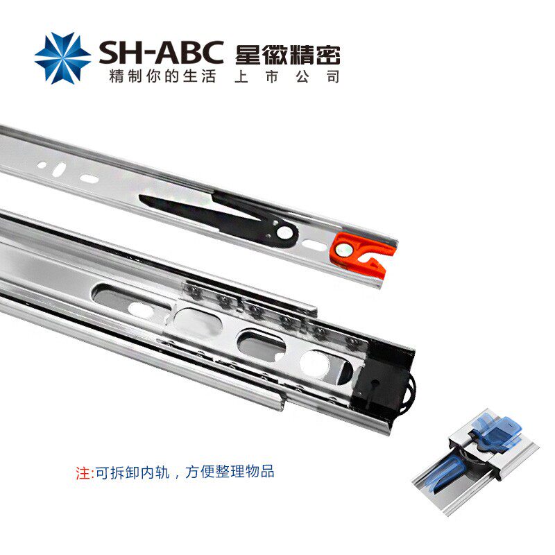 星徽45宽3三节轨阻尼缓冲轨道加厚抽屉滑轨滑道滑槽静音橱柜抽屉