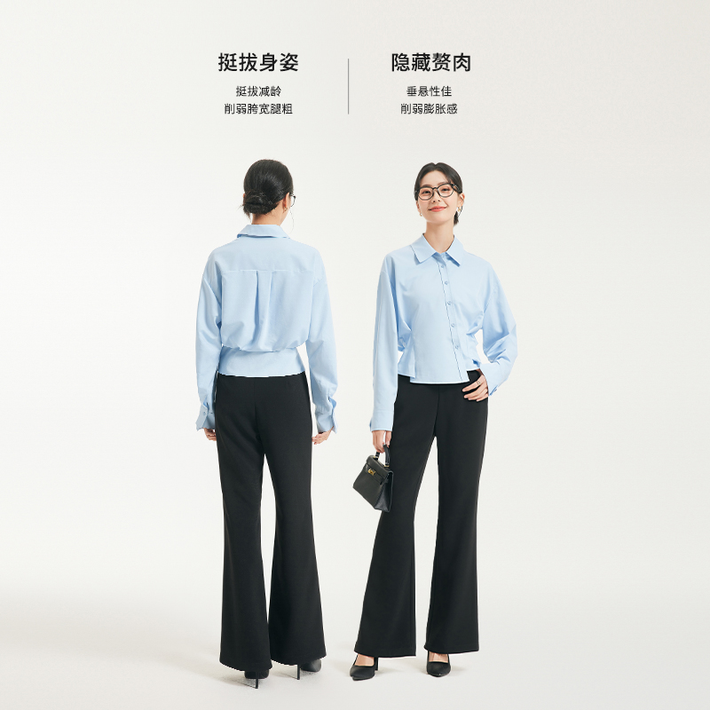 图曼朵黑色西装裤女2025秋职业正装通勤显瘦微喇叭西裤垂感阔腿裤