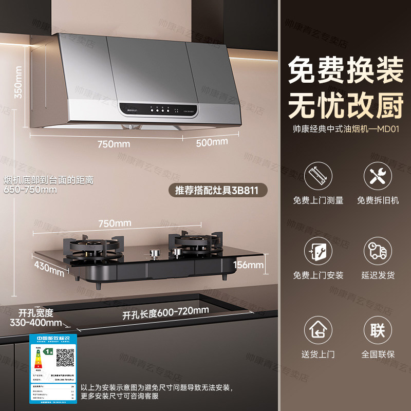 帅康MD01中式抽油烟机750mm小尺寸老式小型家用以旧换新补贴官方