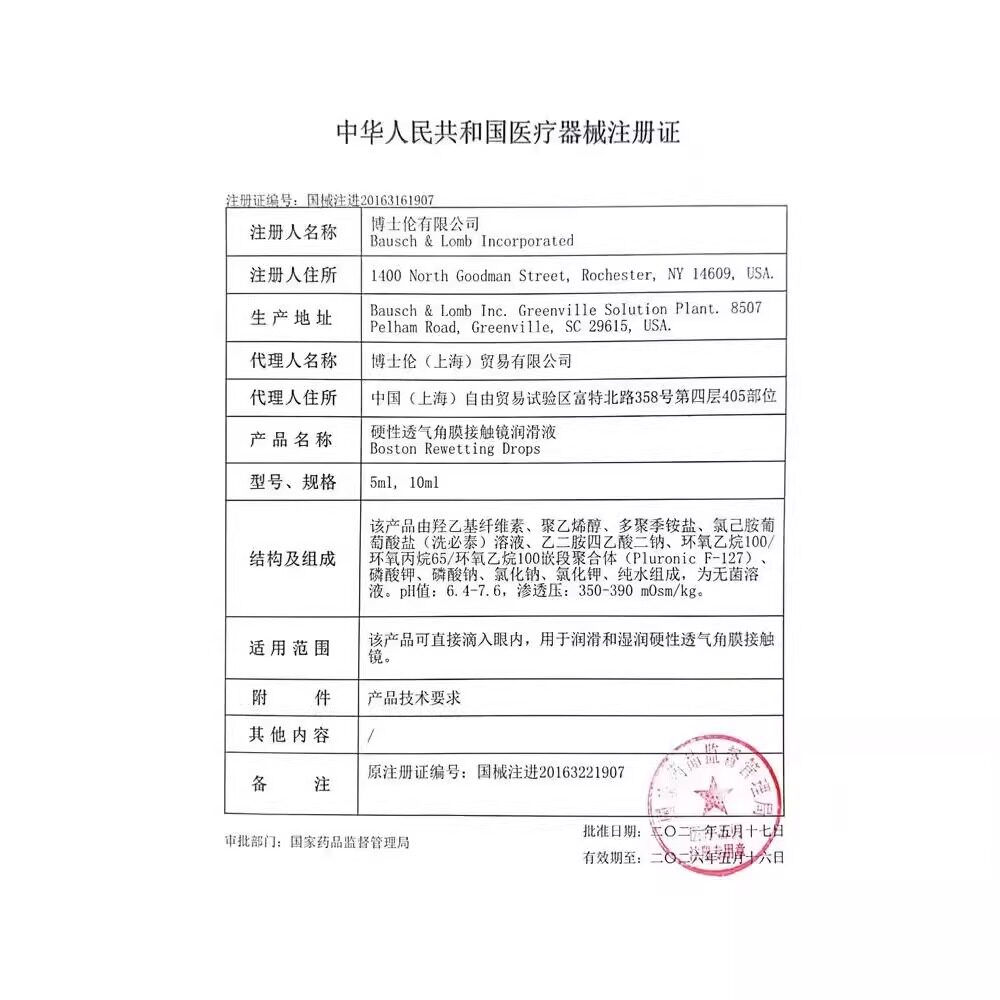 博士伦博视顿新洁润眼液隐形眼镜润滑液硬性角膜塑形OK镜护理液TF