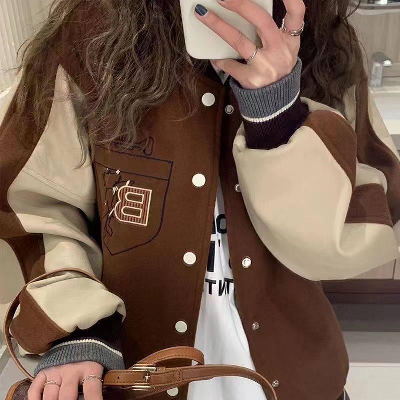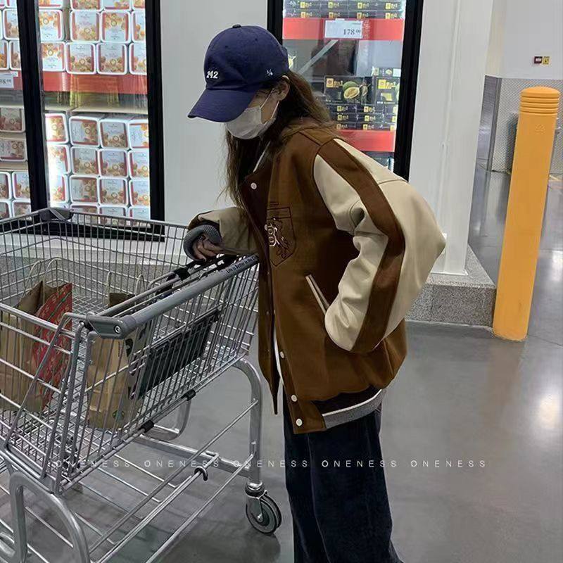 【原版做法】秋冬oversize宽松感夹克上衣女美式宽松百搭棒球服外