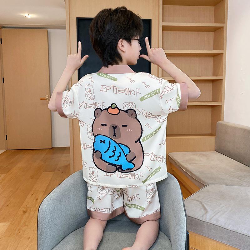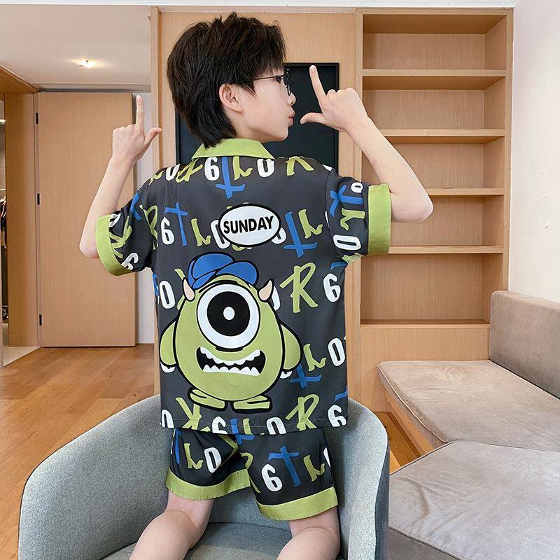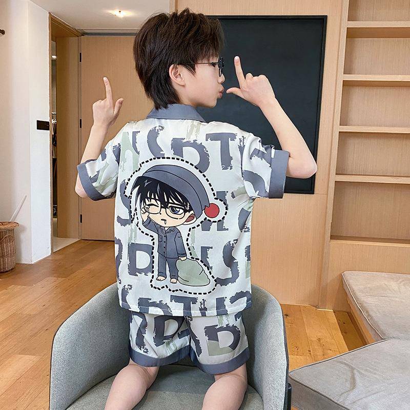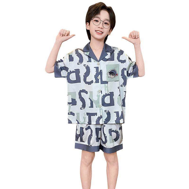 男童冰丝睡衣夏款2025新款中大儿童夏装夏季薄款男孩夏天短袖套装