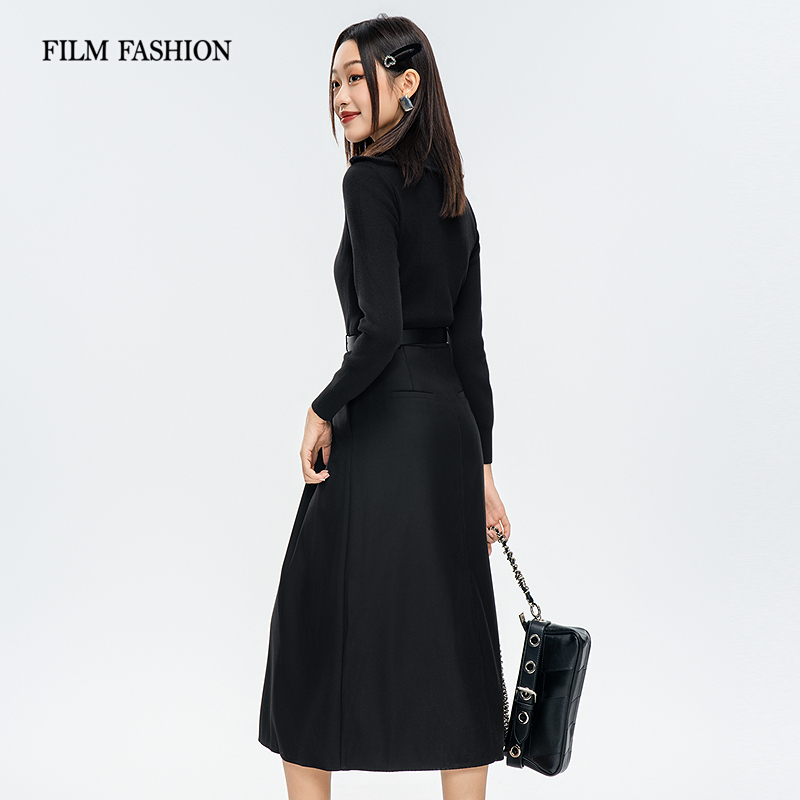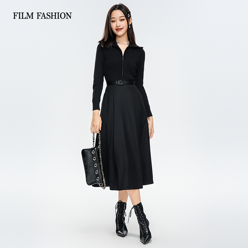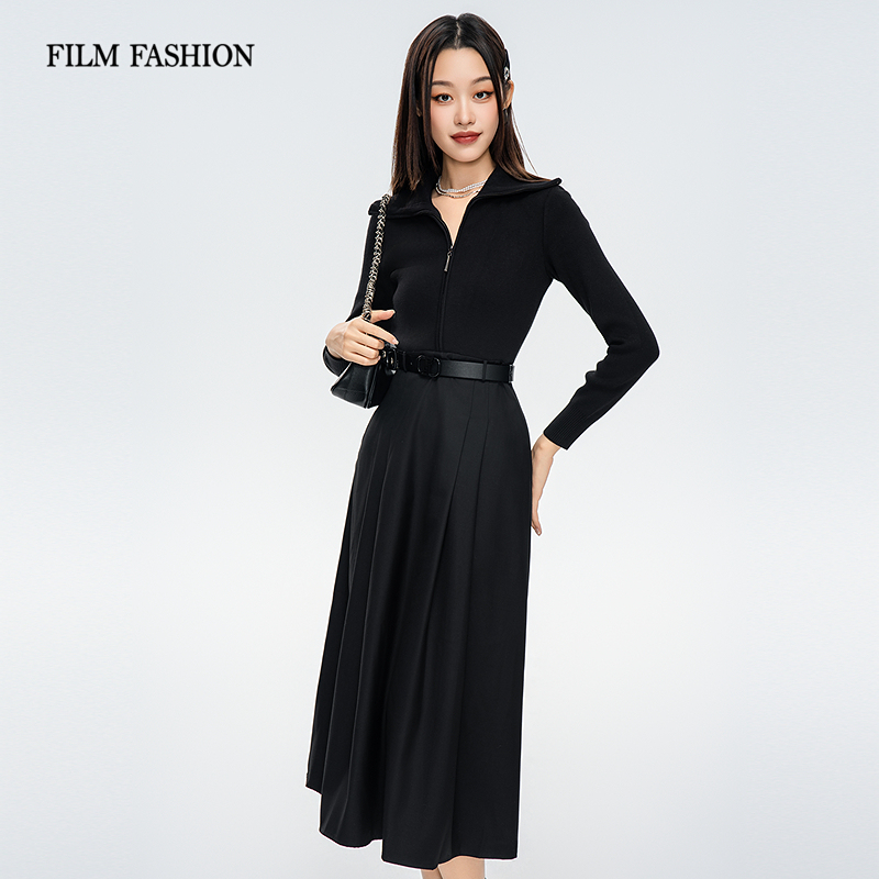 【10.8首降上新】一电影一时装冬季新款毛织拼接连衣裙中长款女士