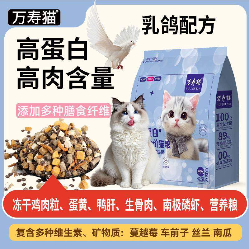 万寿猫高蛋白冻干粮增肥发腮全阶段猫咪通用型幼猫乳鸽鲜肉粮正品