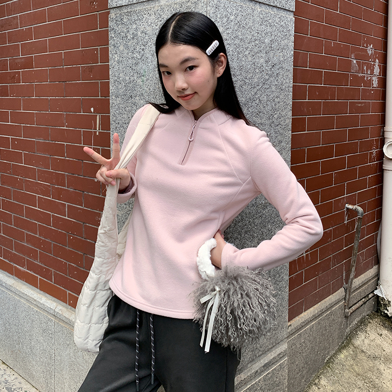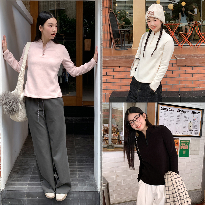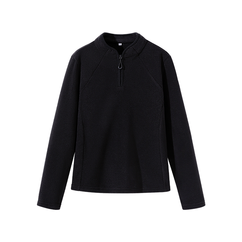 KV真维斯黑色套头卫衣女2025新款秋冬款加绒保暖半开领拉链外套潮