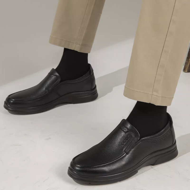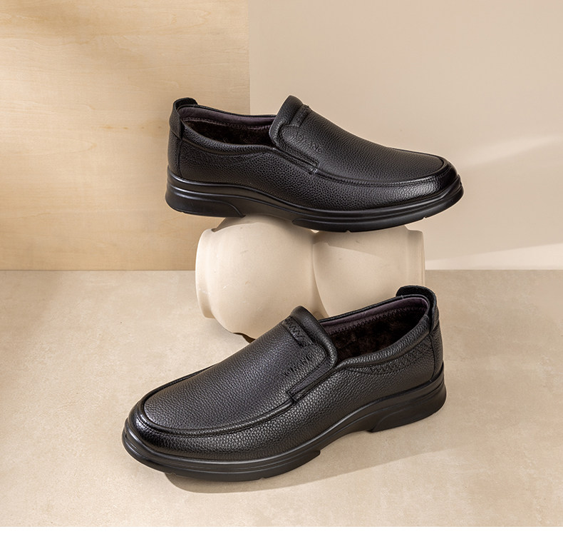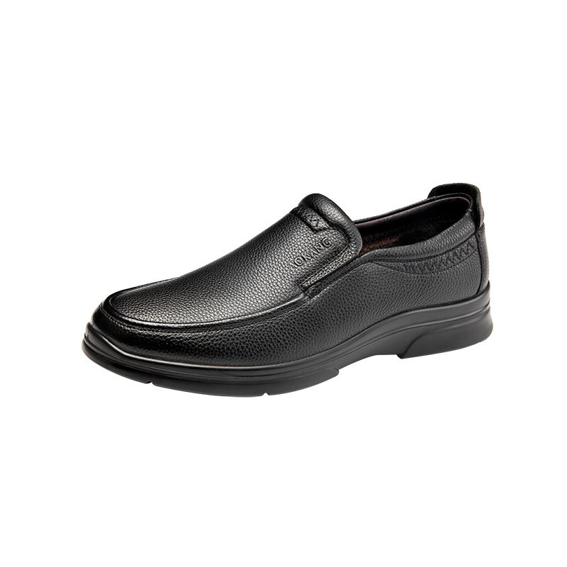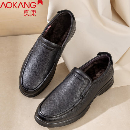 奥康冬季加绒真皮软底爸爸皮鞋