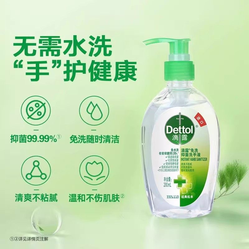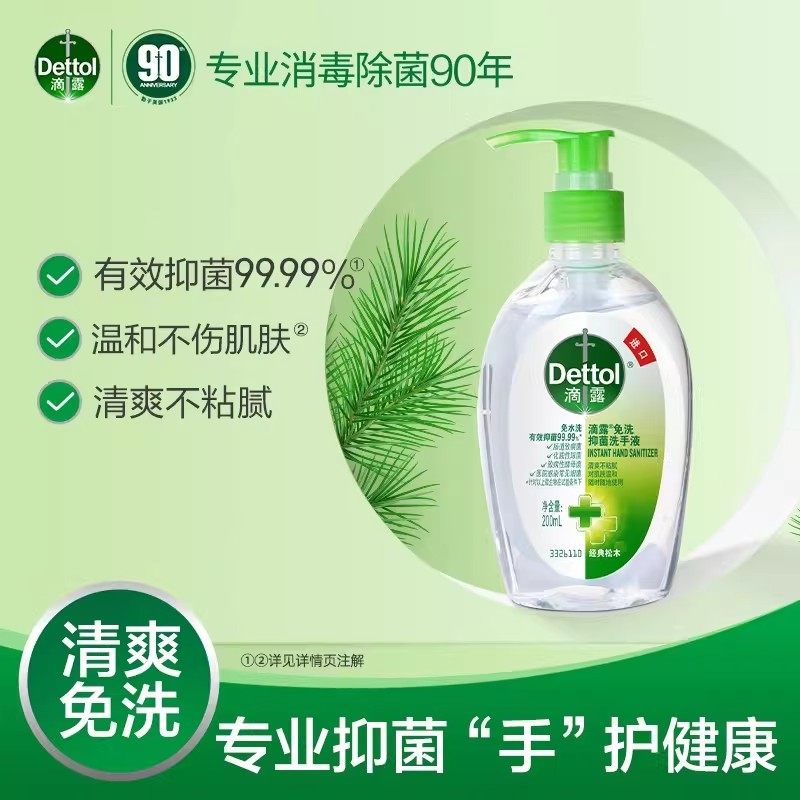 滴露便携免水洗洗手液清爽抑菌温和不刺激200ml家用办公官方正品