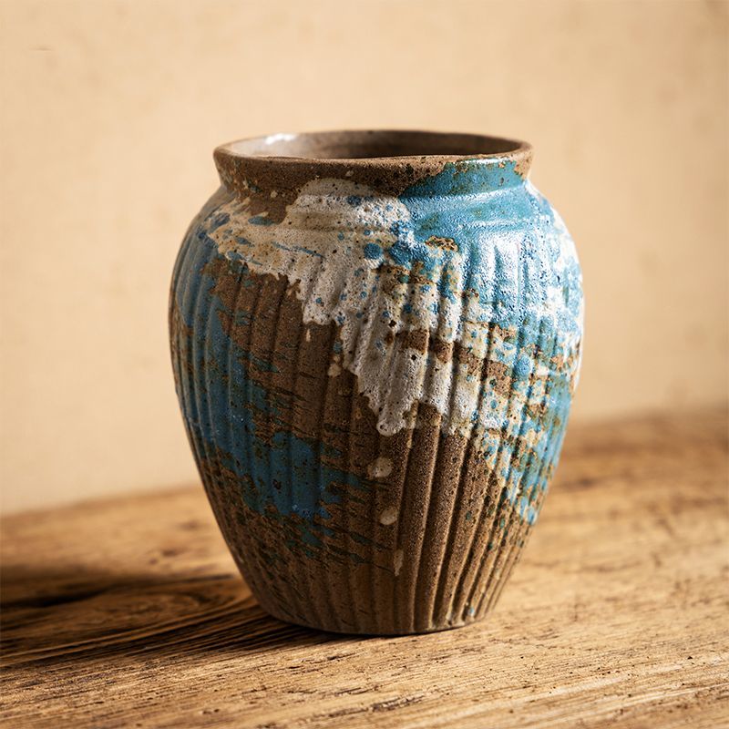 多肉花盆陶瓷简约粗陶家用阳台透气专用盆盆捏花手绘创意个性造型