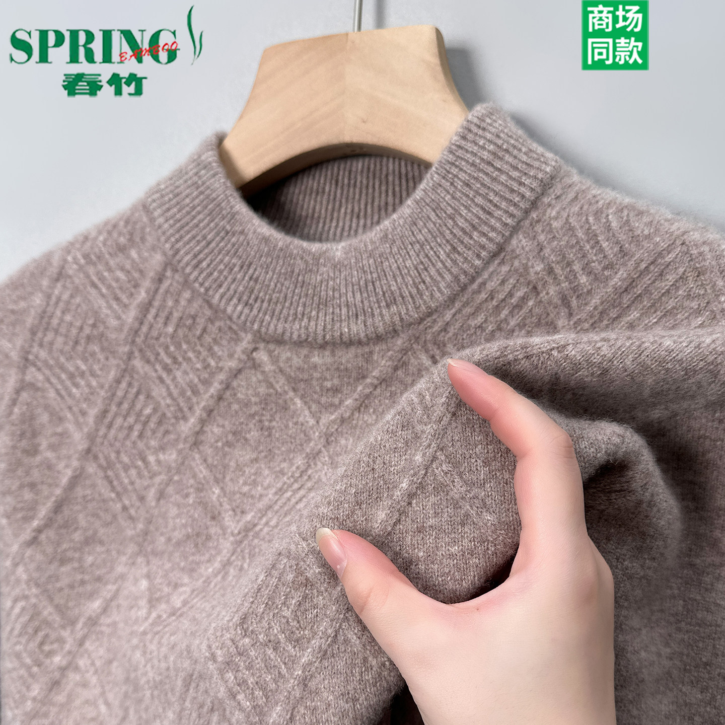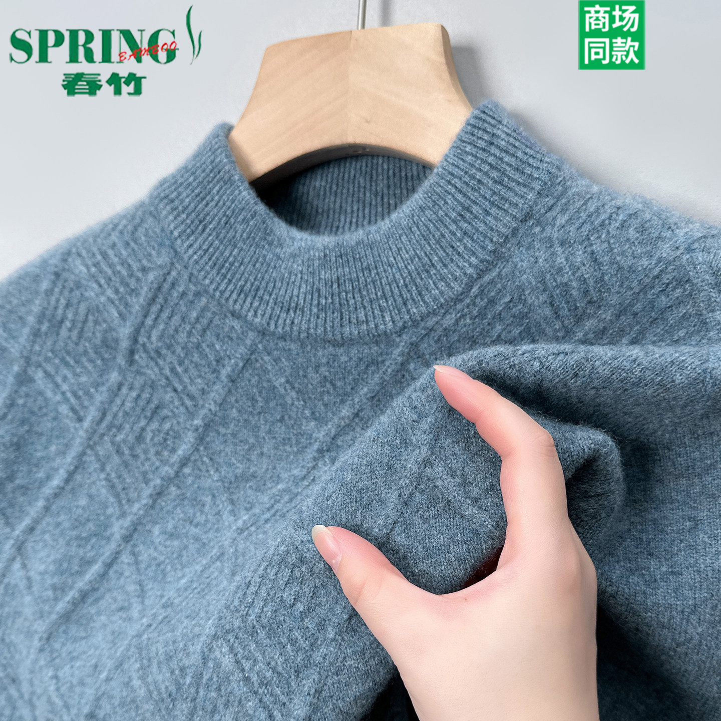 春竹羊毛衫男士100纯羊毛加厚半高领针织毛衣冬季中年打底羊绒衫