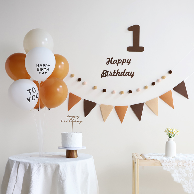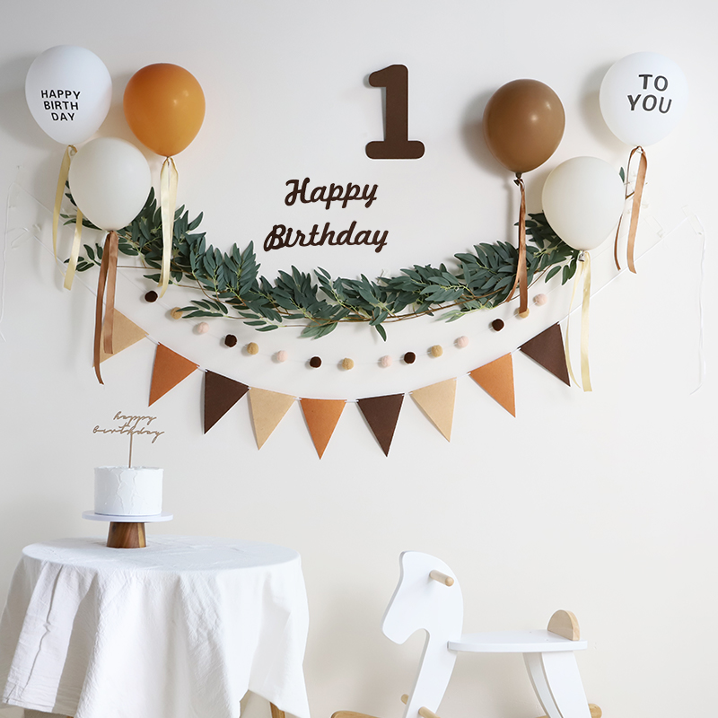 韩国ins风咖啡色儿童周岁布置