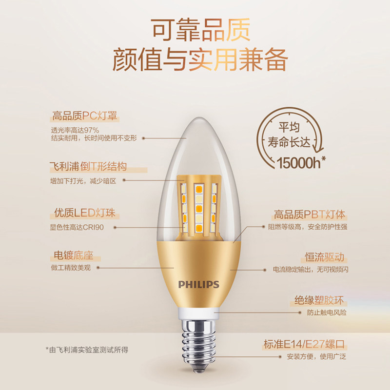 飞利浦家用水晶灯LED灯泡蜡烛泡