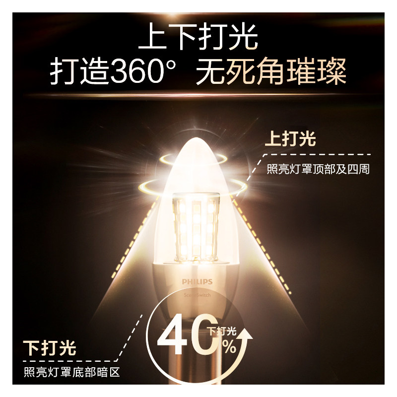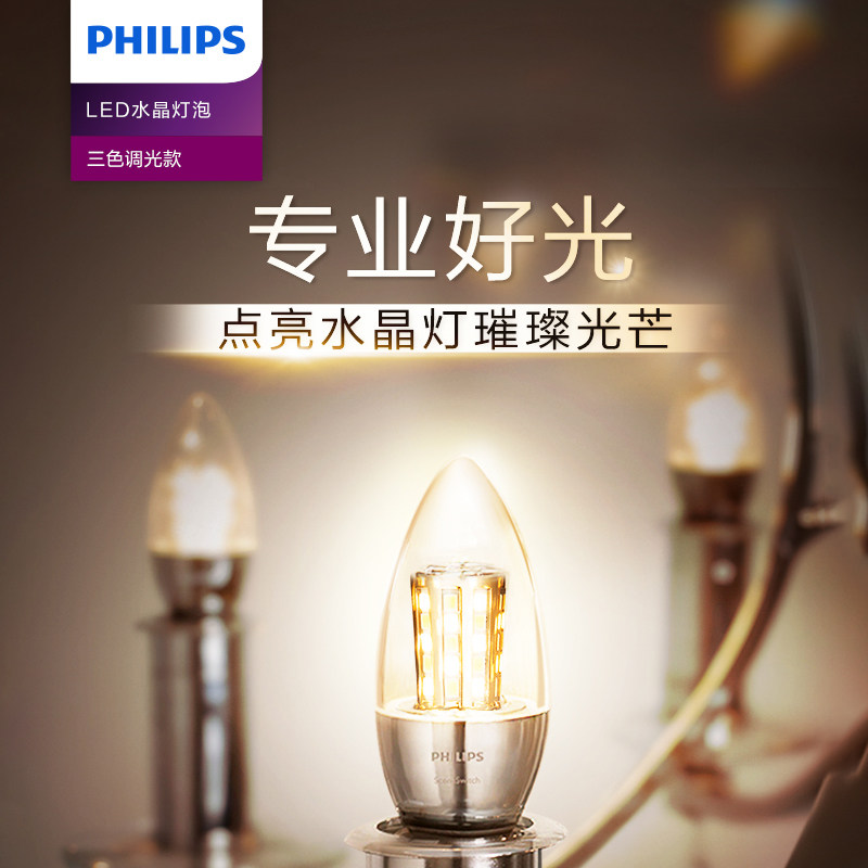 飞利浦三色变光led蜡烛灯泡e27e14螺口节能玉米水晶吊灯替换尖泡