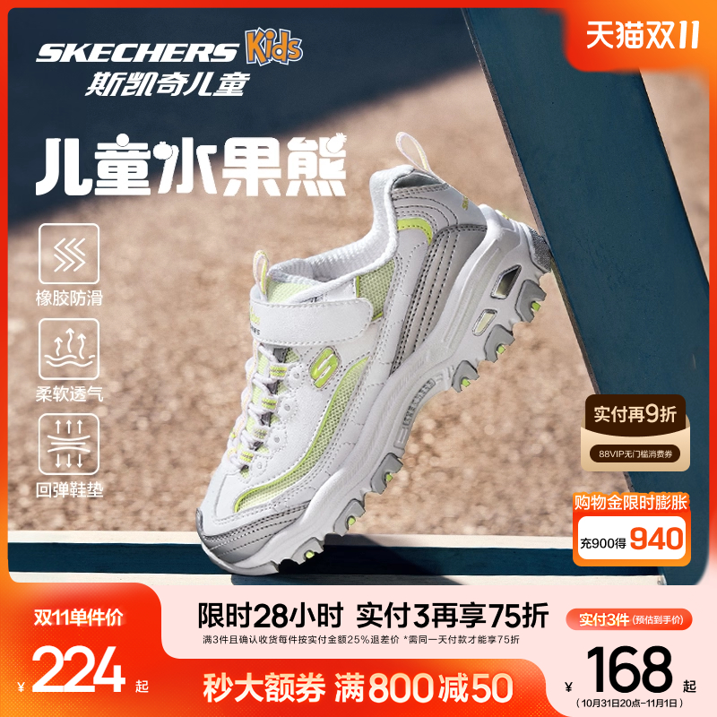 斯凯奇outlets儿童水果熊时尚舒适老爹鞋秋冬女童防滑耐磨运动鞋