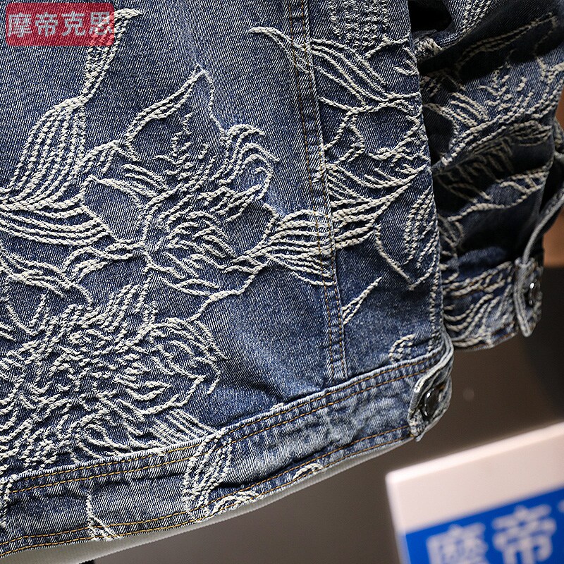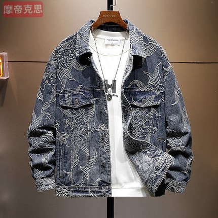 摩帝克思男士牛仔外套国风刺绣