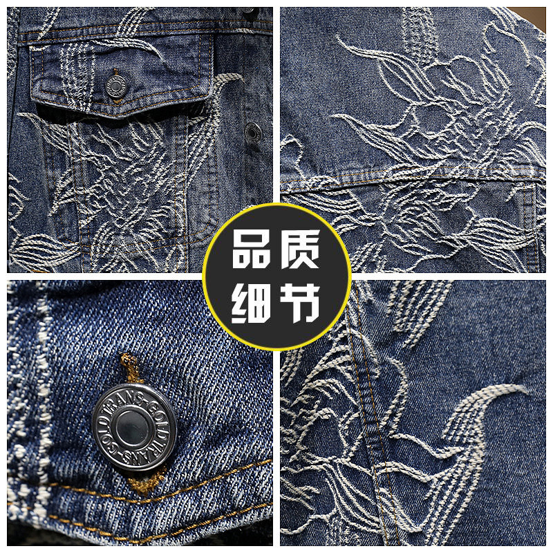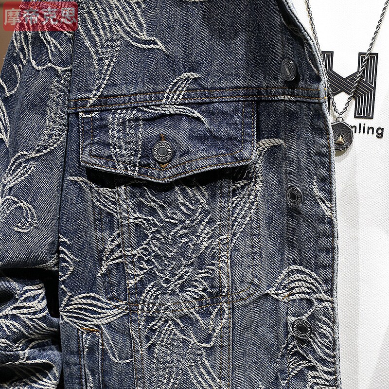 新款香港痞帅潮牌中国风国潮提花牛仔外套男秋款夹克潮流百搭帅气