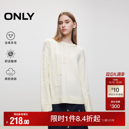 【ONLY奥莱】秋冬含绵羊毛宽松落肩圆领毛衣针织衫女