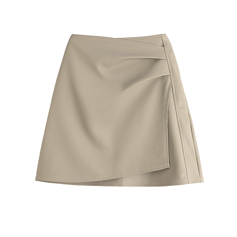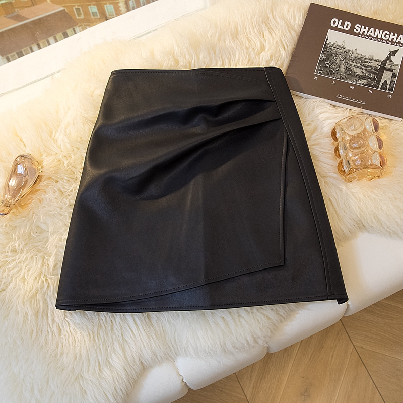 质感褶皱pu皮半身裙女2025秋季百搭黑色小皮裙高腰防走光a字短裙
